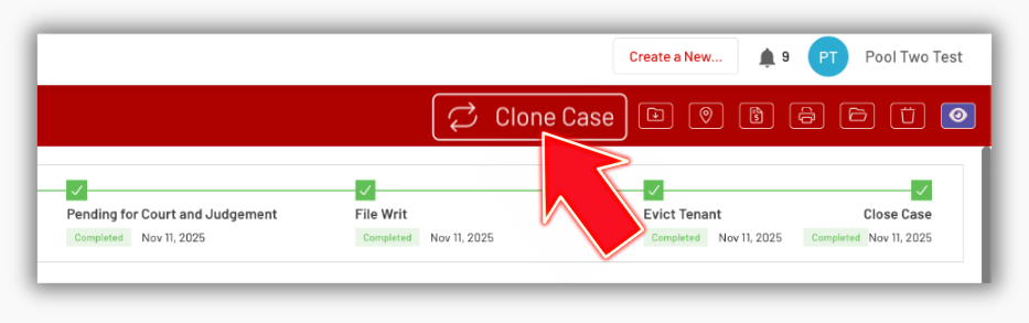 The Clone Case feature simplifies the process of refiling or recreating eviction cases, eliminating repetitive data entry and ensuring accuracy from one case to the next. Both attorneys and clients can quickly reproduce essential case information and documents, saving time and maintaining consistency across workflows.
