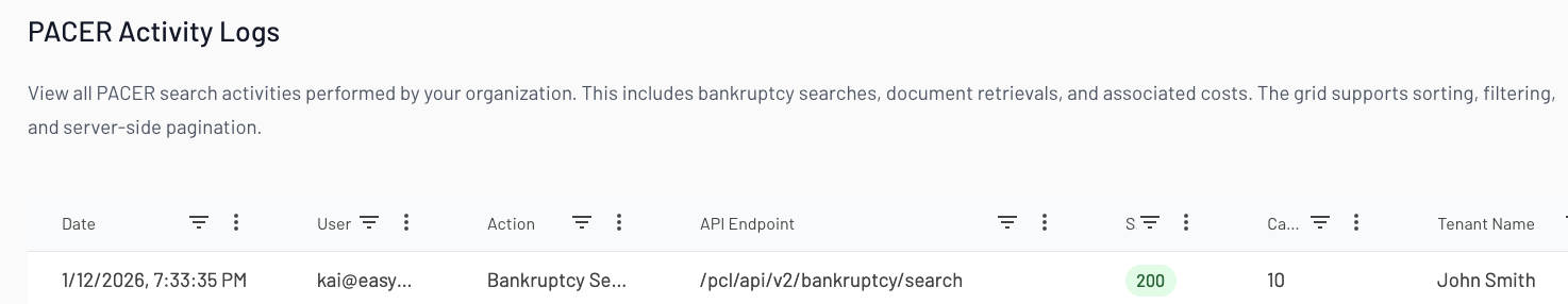 Using the PACER Bankruptcy Check helps you stay informed about potential bankruptcy filings that may affect your eviction workflow.