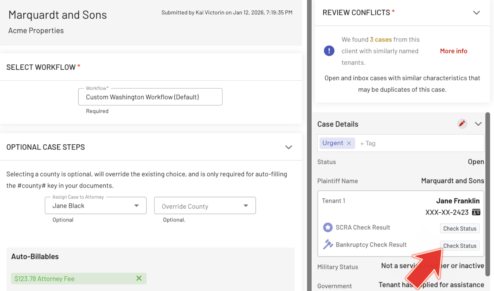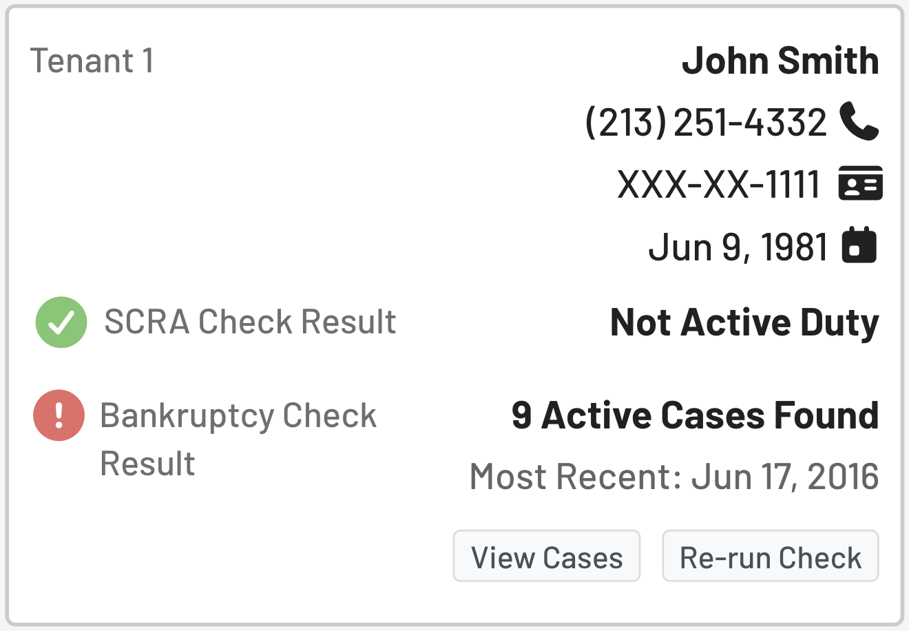 Unlike the SCRA check, the PACER Bankruptcy Check can be run multiple times for the same tenant.