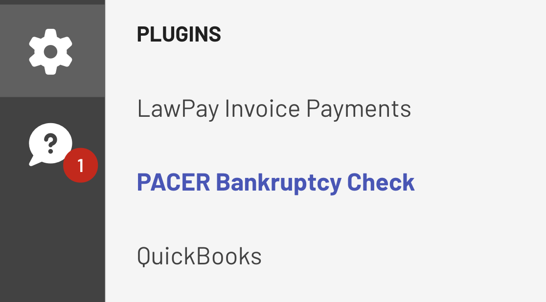 Before running a bankruptcy check, you must connect your PACER account. Enter your credentials -- which will be encrypted and stored in our database for use--and press Save. Click Test Connection to confirm your credentials are valid.