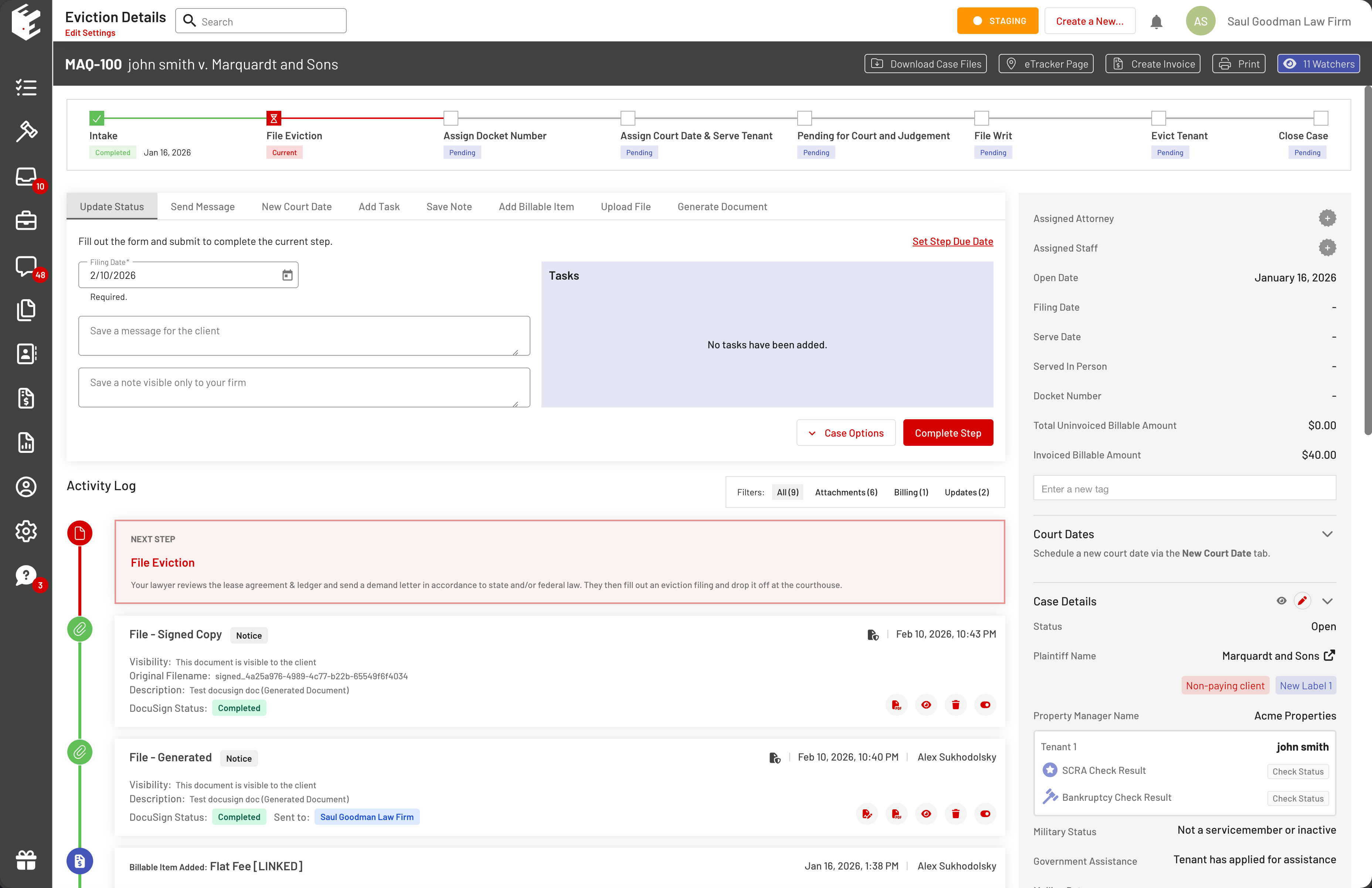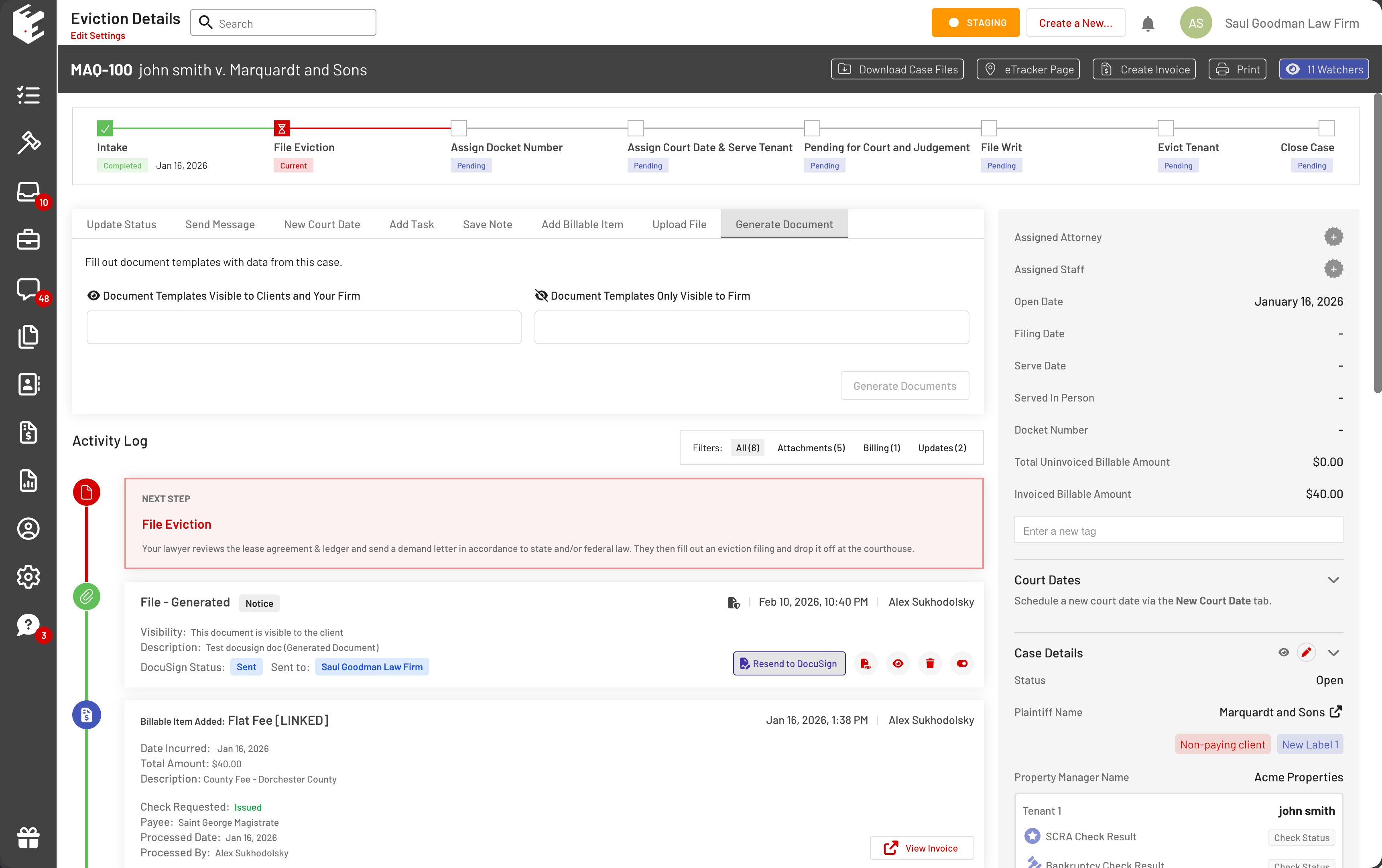 - Your EasyEviction account must have DocuSign connected (set up in Firm Settings > Integrations).