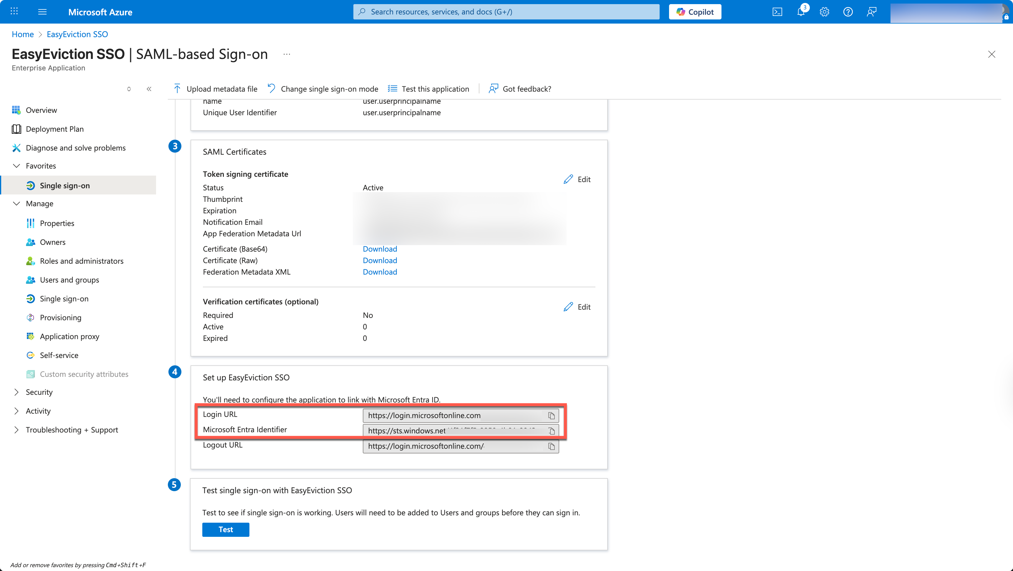 - Sign on URL (Optional) set to https://portal.easyeviction.com/auth/login